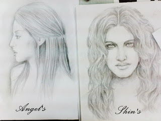 haha,i draw my partner Ker Shin's ear lo..see..she's drawing mine too..